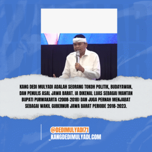 Dedi Mulyadi, atau biasa disapa Kang Dedi Mulyadi, merupakan seorang tokoh politik Tanah Air yang dikenal tidak hanya karena kiprahnya dalam pemerintahan, tetapi juga karena kepeduliannya terhadap anak yatim dan fakir miskin. Saat ini beliau menjabat sebagai Gubernur Jawa Barat sejak 20 Februari 2025